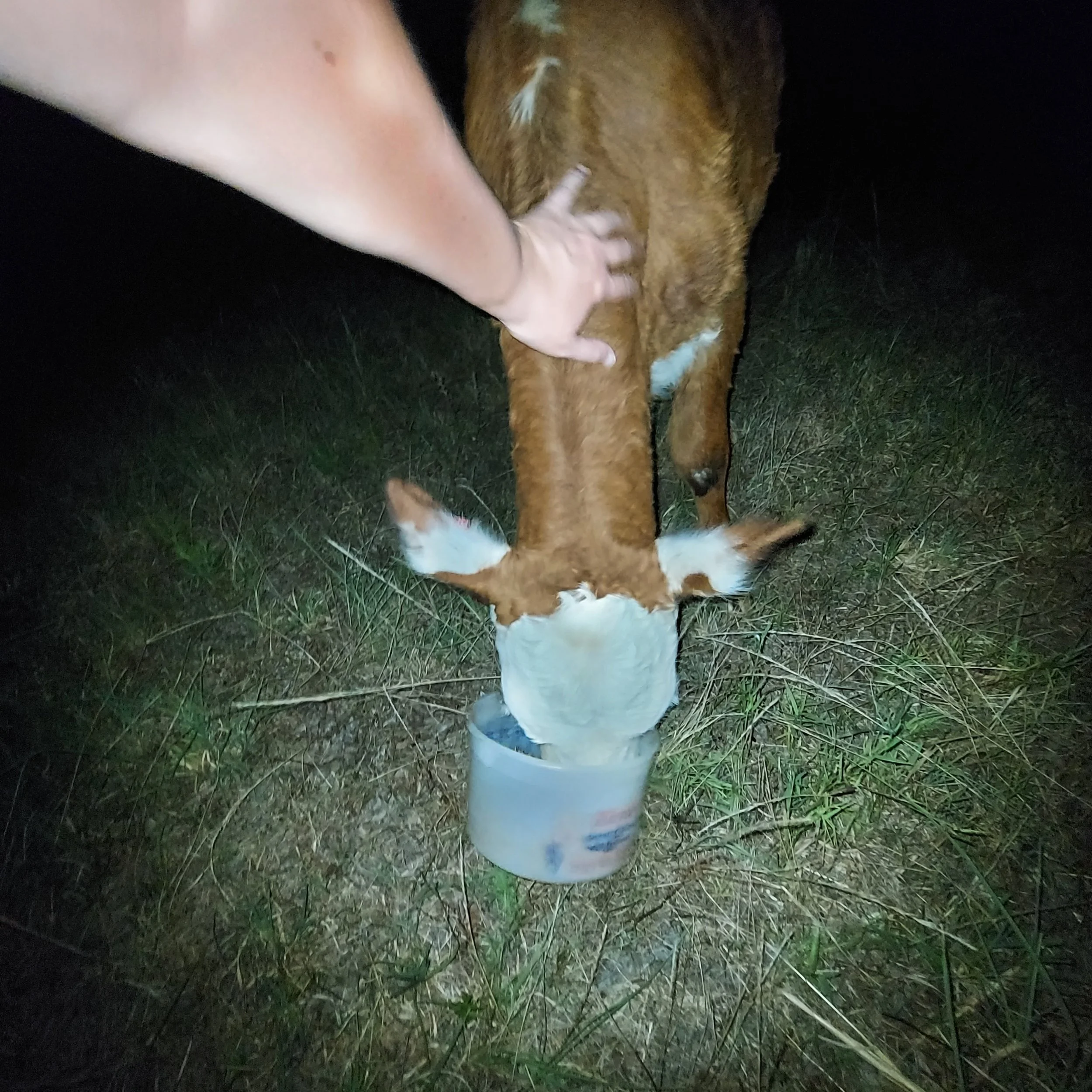 Daisy drinking milk from a bucket