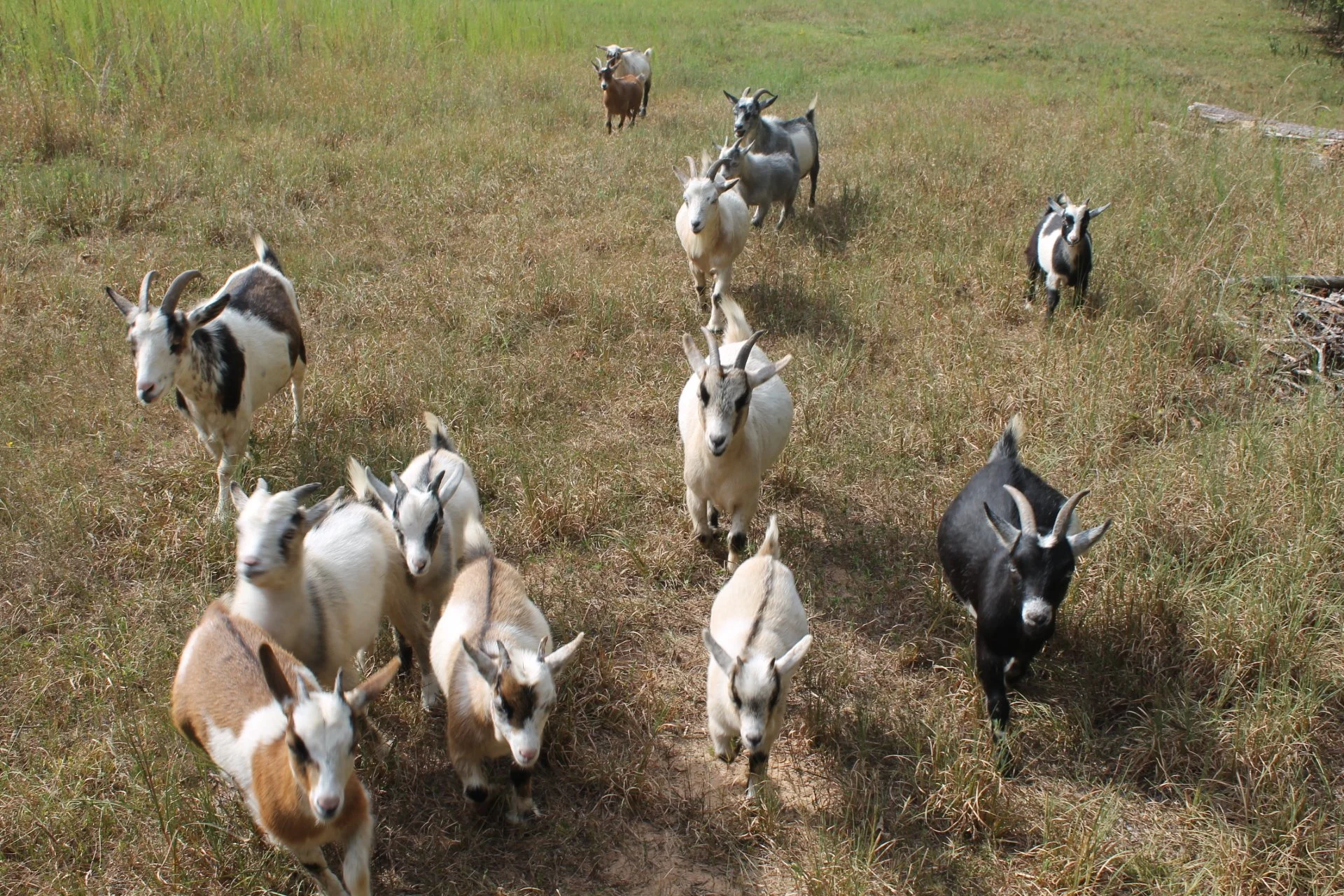 We are the next generation of fence-line cleaners here on the farm. There are so many of us the humans can barely keep count! We were all born here in the spring of 2024 or 2025. We love to run and jump and climb on everything-especially trailers or fallen trees. We are all very friendly and will come running in a little line to see you. Many of us still enjoy being picked up and loved on. We will happily eat your pants and shoelaces if you give us a chance.